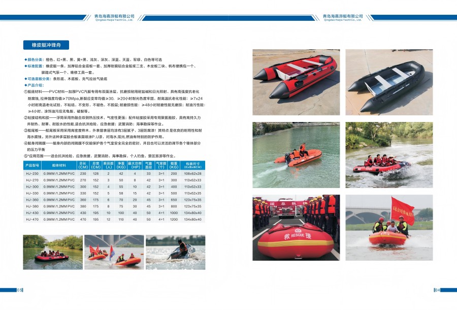 2、粘接結構和膠-----浮筒采用熱融合雙側熱壓技術,氣密性更強;配件粘接膠采用專用聚氨酯膠,具有高持久力并耐熱、耐寒、耐膠水的性能.適合抗洪搶險,應急救援;武警消防;海事勘探等作業(yè)。