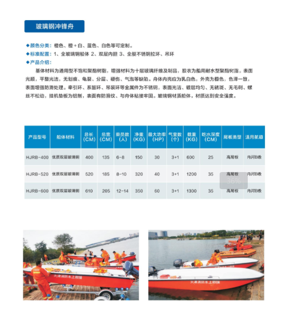 【顏色分類】 橙色,橙+白,藍(lán)色,白色等可定制。 1、全玻璃鋼船體2、雙層內(nèi)膽 3、全艇不銹鋼拉環(huán)、吊環(huán) 【產(chǎn)品介紹】 一、 *玻璃鋼防汛沖鋒舟以船外機(jī)為動(dòng)力,專用于防汛搶險(xiǎn)的玻璃鋼舟。具有重量輕、不沉性好、抗損壞能力強(qiáng)等特點(diǎn),可在內(nèi)河B類航區(qū)中防汛搶險(xiǎn)救災(zāi)使用。 二、 *基體材料為通用型不飽和聚酯樹脂,增強(qiáng)材料為十層玻璃纖維及制品,膠衣為船用耐水型聚酯樹脂。表面光順,平整光潔,無劃痕、龜裂、分層、硬傷、氣泡等缺陷。舟體內(nèi)殼應(yīng)為乳白色,外殼為橙色,色澤一致,表面增強(qiáng)防滑處理。 三、*沖鋒舟牽引環(huán)、系留環(huán)、吊裝環(huán)等金屬件為不銹鋼,掛機(jī)墊板為鋁制。 四、*應(yīng)用范圍-----適合抗洪搶險(xiǎn),應(yīng)急救援,武警消防,海事勘探,個(gè)人釣魚,景區(qū)旅游等作業(yè)。"